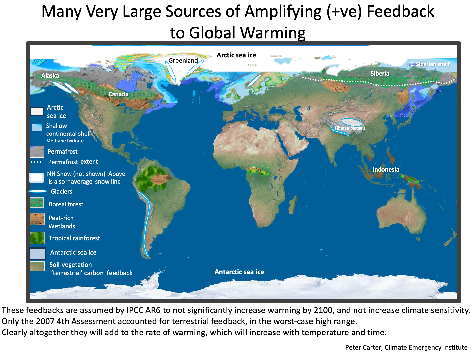 Climate system positive feedbacks or loops tend to be self perpetuating and accelerating making them catastrophically dangerous.